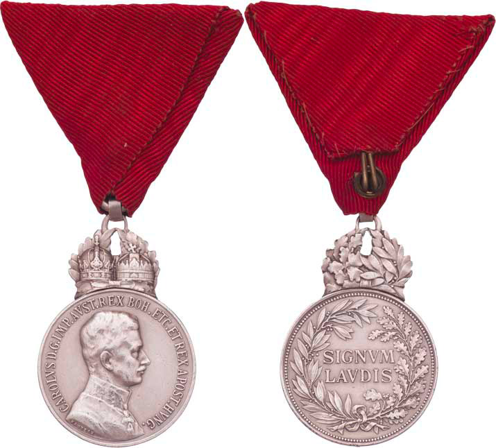 Signum Laudis - stříbrný stupeň, Sign.Kautsch, Punc. "A", Marko.147a, VM1.29-VI-H, původní civilní stuha