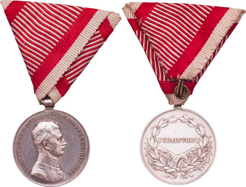 Malá stříbrná medaile za statečnost, Marko.235a, VM1.5-XII-D, Sign.Kautsch, Punc., původní stuha