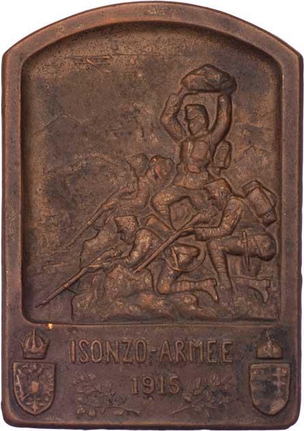 Armáda Isonzo - 1915, Sign. Herrmann, mosazný plech 29x44 mm se zavíracím špendlíkem