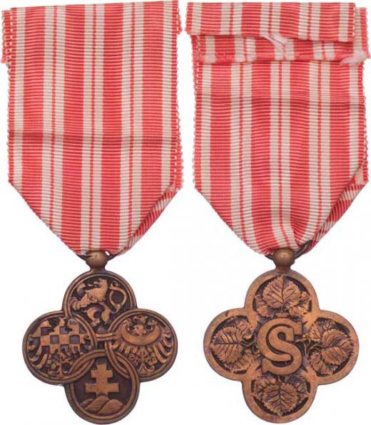 Československý válečný kříž 1914-1918, VM.5-I-B, I.pražské vydání (1918 - 1920), světlý bronz, původní stuha