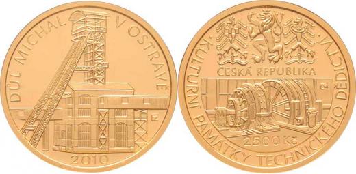 2500 Koruna (1/4 Unce) 2010 - Důl Michal v Ostravě, KM.118 (Au999, 7.78g, 9.200 ks), kapsle