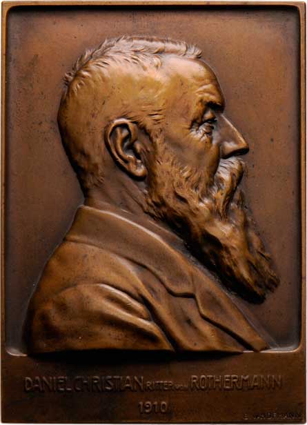 Daniel Christian Ritter von Rothermann 1910 - poprsí zprava, nápis, Sign., bronz 51x80 mm, krásná patina