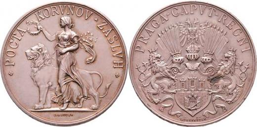 Záslužná medaile hl.města Prahy - znak města, opis / Čechie se lvem kráčející doleva, opis, Sign., zn.WP, Ag900, 40mm, 24.246g, udělení "Arnošt Diepold 1904"