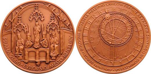 Praha - evropské město kultury 2000 - část orloje Staroměstské radnice/ prvky gotické výzdoby pražských staveb, Sign., patinovaný bronz 60 mm