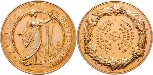 Šmakal - I.zemská výstava umění kuchařského 1904 - Čechie s vavřín. věncem, opis / věnec a česko-německý opis, Sign., Nepunc., zlac. Ag 55mm, 38.108g, dr.hr.