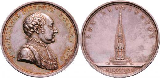 Maxmilian Josef 1824 - medaile na 25 let vlády - poprsí zprava, opis / pomník, opis, vročení, Sign. Losch, Ag 47mm, 43.798g, nep.hr., nep.rysky, patina
