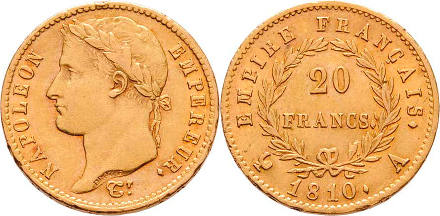 20 Frank 1810 A, Paříž, KM.695.1 (Au900), 6.447g, dr.hr., nep.rysky, pěkná patina