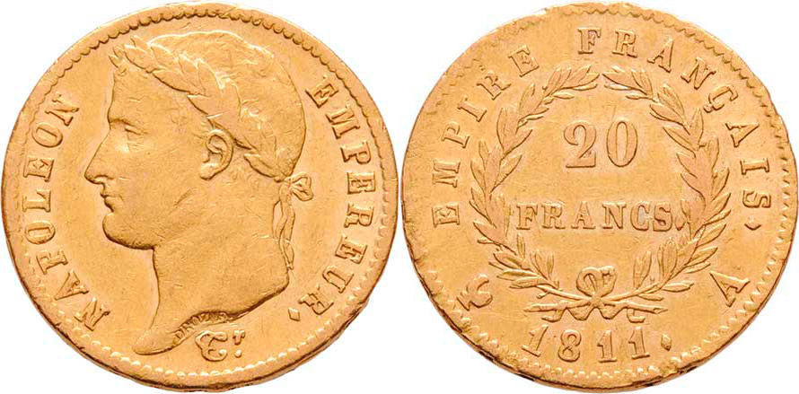 20 Frank 1811 A, Paříž, KM.695.1 (Au900), 6.424g, dr.hr.ražbou, dr.rysky, nep.škr.