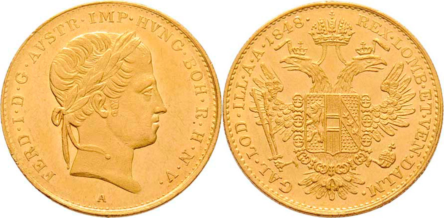 Dukát 1848 A, Vídeň, 3.492g, nep.hr., nep.rysky, téměř