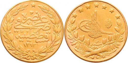100 Piastr AH.1293, 30.rok vlády (= 1905), KM.730, 7.122g, hrana opravená po zasazení, rysky, patina