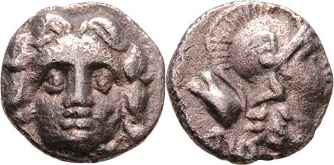 AR Obol, Hlava Gorgony čelně / hlava Atény zprava, podobný jako SG.5476, 0.881g, nep.exc., pěkná patina