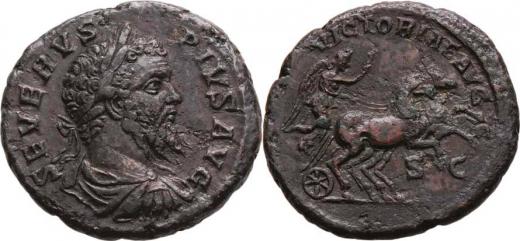 AE As, Rv:"VICTORIAE.AVGG.S.C." Victoria na bize zprava, S.neuvádí, RIC.829a - minc. Řím - ražba z let 202 - 211, dr.vady mater., nep.exc., pěkná pat. RR!
