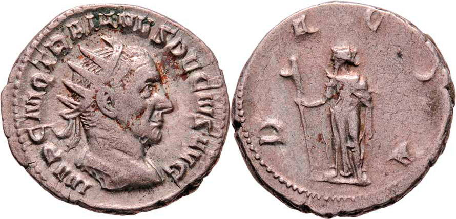 AR Antoninianus, Rv:"DACIA.", stojící Dacia, RIC.12b, S.2593 - mincovna Řím - blíže nedatován, pěkná patina