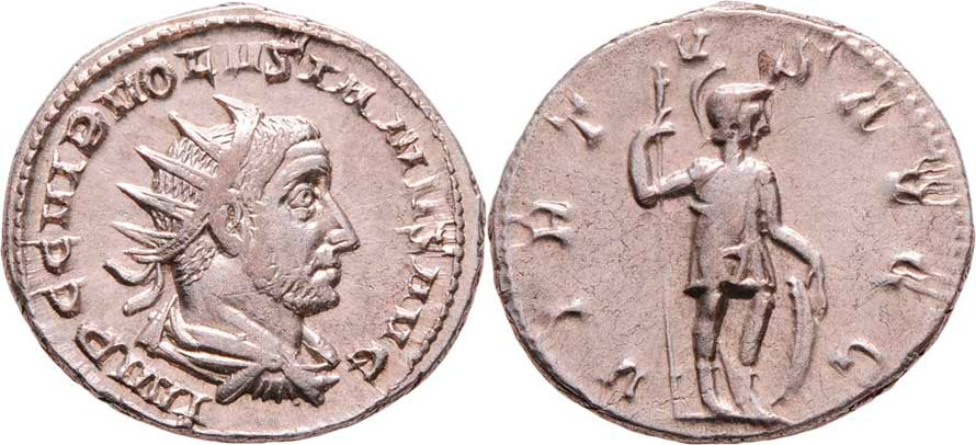 Bil.antoninianus, Rv:"VIRTVS.AVGG.", stojící Virtus, S.2732, RIC.206 - minc. Mediolanum - blíže nedatován