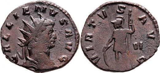 AR Antoninianus, Rv:"VIRTVS.AVG.", stojící Virtus, S.2901, RIC.325 - minc. Řím - ražba z let 260 - 268, mírně exc., nedor., pěkná patina