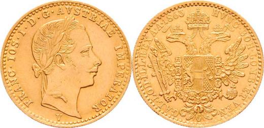 Dukát 1863 V, 3.465g, nep.hr., dr.rysky, patina RR!