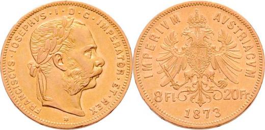 8 Zlatník 1873 (pouze 12.000 ks), 6.426g, dr.hr., nep.rysky, pěkná patina R!