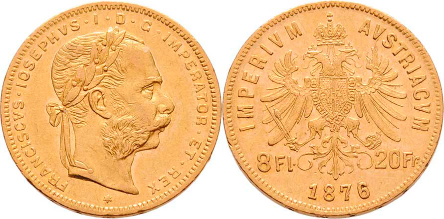 8 Zlatník 1876, 6.430g, dr.hr., nep.rysky, pěkná patina