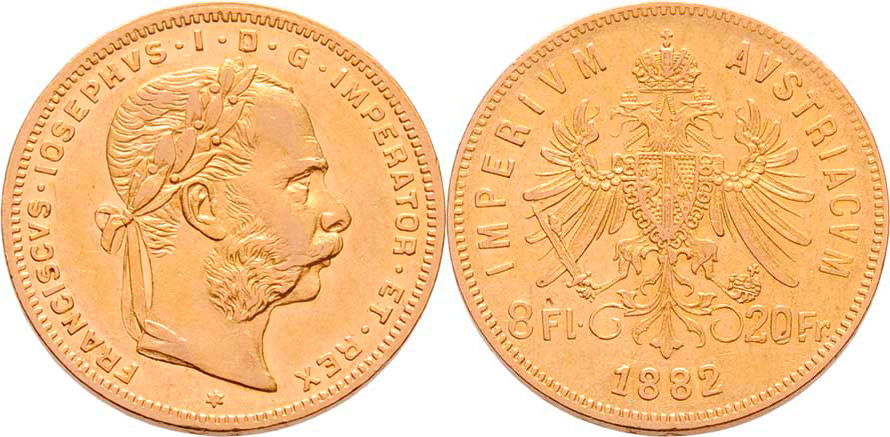 8 Zlatník 1882, 6.414g, nep.hr., nep.rysky, pěkná patina