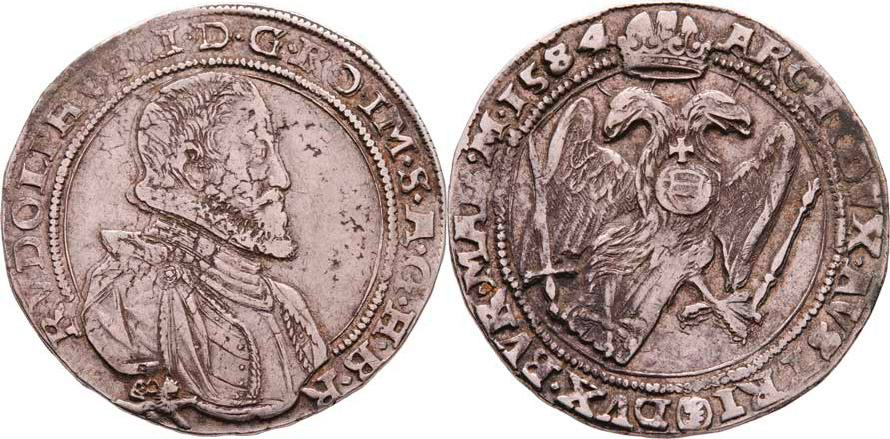 1/2 Tolar 1584, K.Hora-Šatný, J.30, MKČ.370, 14.353g, dr.vady materiálu, nedor., nep.dvojráz, patina