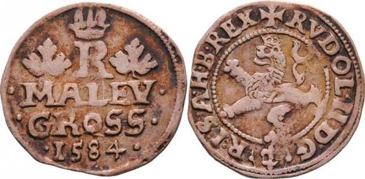Malý groš 1584, Praha-Ercker, HN.20b (opis 6c), nápis ". MALEY ./. GROSS ./. 1584 .", 0.971g, krajový střížek, nep.nedor., pěkná patina