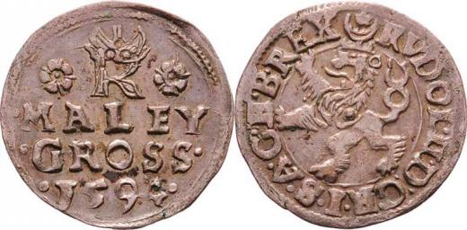 Malý groš 1594, Jáchymov-Hoffmann, HN.8b (opis 7c), nápis ". MALEY ./. GROSS ./. 1594 .", 0.979g, nep.nedor., pěkná patina