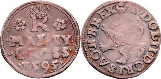 Malý groš 1595, Jáchymov-Hoffmann, HN.8b (opis 7c), nápis ". MALEY ./. GROSS ./. 1595 .", 0.944g, nedor., patina