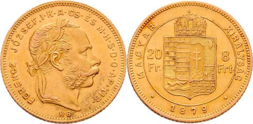 8 Zlatník 1879 KB, 6.439g, nep.hr., nep.rysky, pěkná patina, téměř