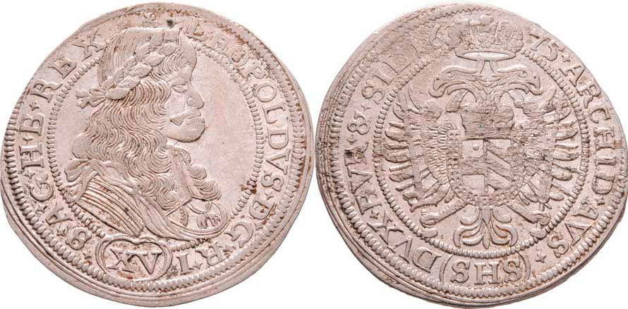 XV Krejcar 1675 SHS, Vratislav-Hammerschmidt, MKČ.1602a, Nech.684, 6.414g, oválný střížek, pat. R!