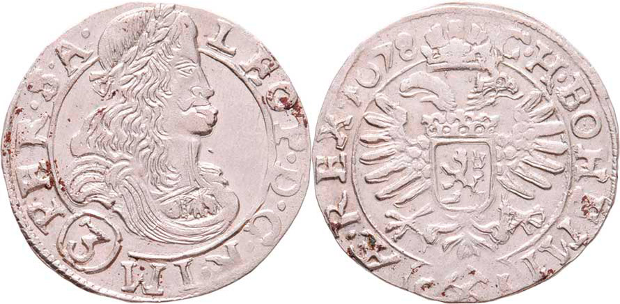 3 Krejcar 1678 CK, K.Hora-Krahe, Nech.294, MKČ.1453, 1.924g, nep.nedor., nep.dvojráz, nep.skvrnky