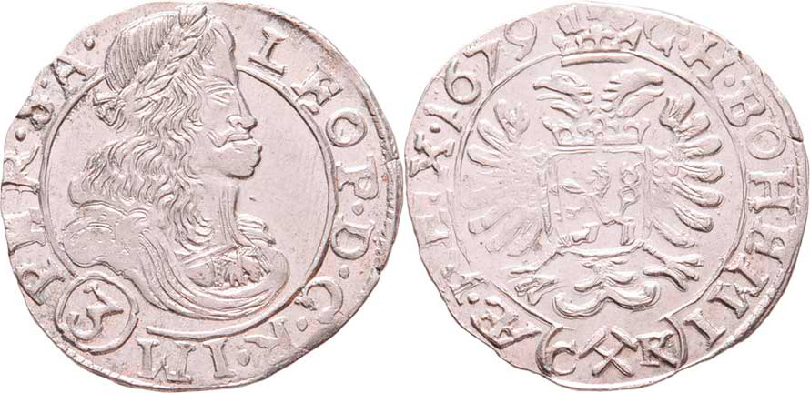 3 Krejcar 1679 CK, K.Hora-Krahe, Nech.295, MKČ.1453, 1.891g, nep.nedor., nep.dvojráz