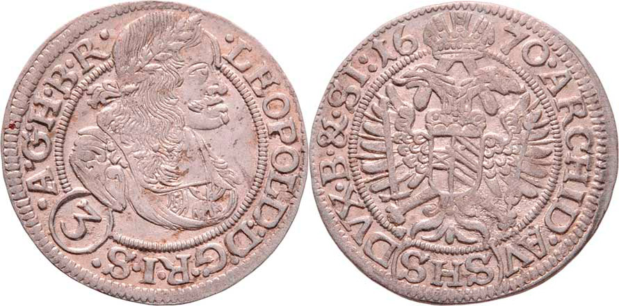 3 Krejcar 1670 SHS, Vratislav-Hammerschmidt, dělení opisů: "...I.S.(3).A.G.../...AV.(SHS).DVX.B.&.SI:", MKČ.1622, Nech.743, 1.461g, nep.ned., pěkná patina