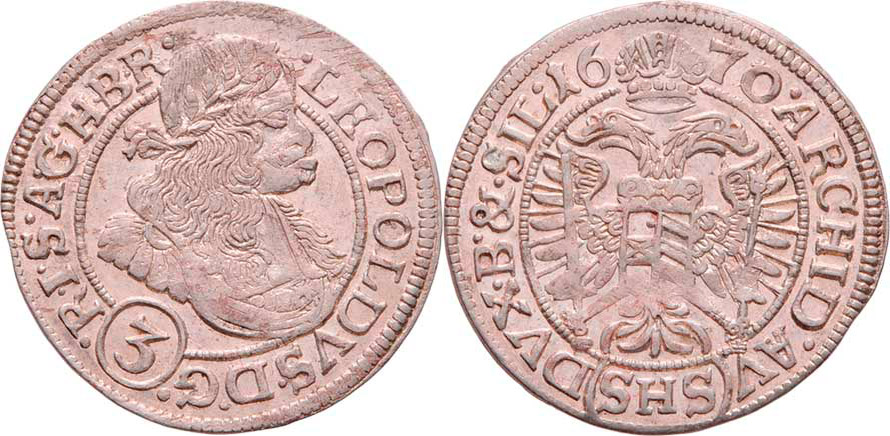 3 Krejcar 1670 SHS, Vratislav-Hammerschmidt, dělení opisů: "...D.G.(3).R.I.../...AV.(SHS).DVX.B.&.SIL.", MKČ.1624, Nech.741, 1.844g, pěkná patina