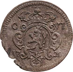 1/4 Krejcar 1720, Praha-Scharff, J.1b, MKČ.1850, 0.279g, pěkná patina RRR!