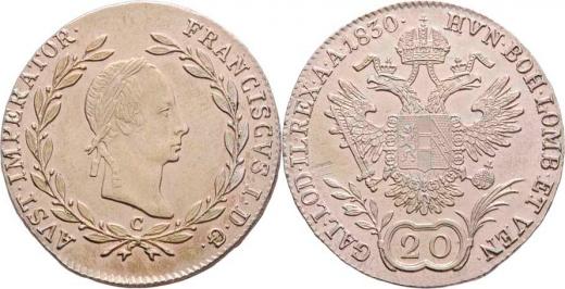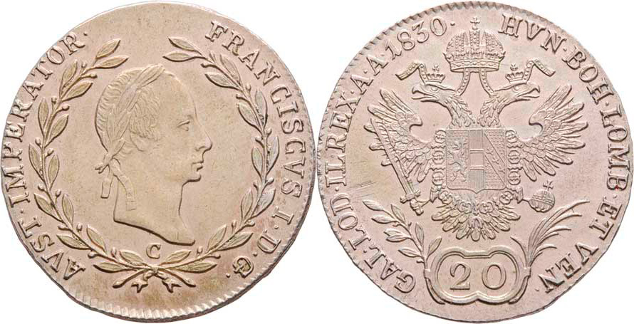 20 Krejcar 1830 C, 6.661g, nep.vada razidla, nep.just., pěkná patina