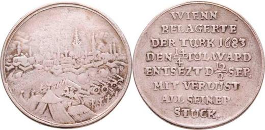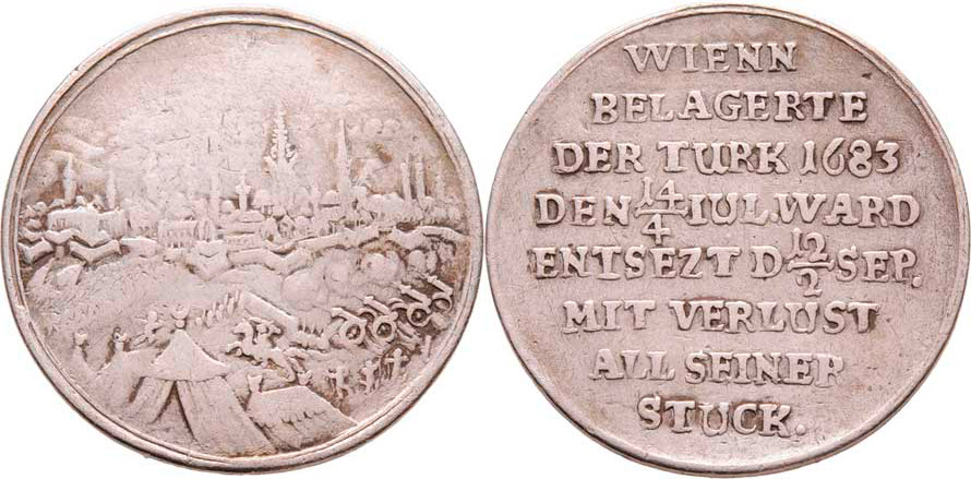 Osvobození Vídně od Turků 1683 - pohled na obležené město / 8-řádkový nápis, Nesign., Ag, 28mm, 6.366g, M.905, H.2066, dr.rysky, patina R!