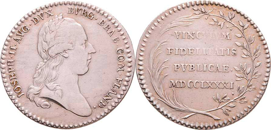 Berckel - AR 27mm na holdování ve Flandrech 1781 - poprsí zprava, opis / 4-řádk.nápis ve věnci, Nesign., 6.317g, Nov.H.6b, M.2141, vlas.rysky, pěkná patina