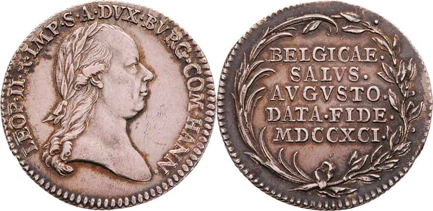 AR menší jeton na holdování v Hannegau 1791 - poprsí zprava, opis / 5-řádk.nápis ve věnci, Nesign., 21mm, 2.837g, M.2232, Novák.L.1b, nep.nedor., pěkná patina