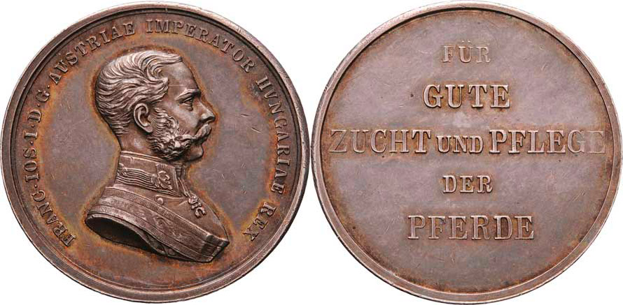 AR německá medaile Za dobré chování a hledění koňů - hlava zleva, latin.opis / 5-řádk.němec.nápis, Nesign. (Tautenhayn), Ag 34mm, 18.314g, Haus.2808, dr.rysky