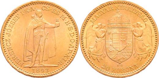 20 Koruna 1893 KB, 6.769g, nep.hr., nep.rysky, pěkná patina, téměř