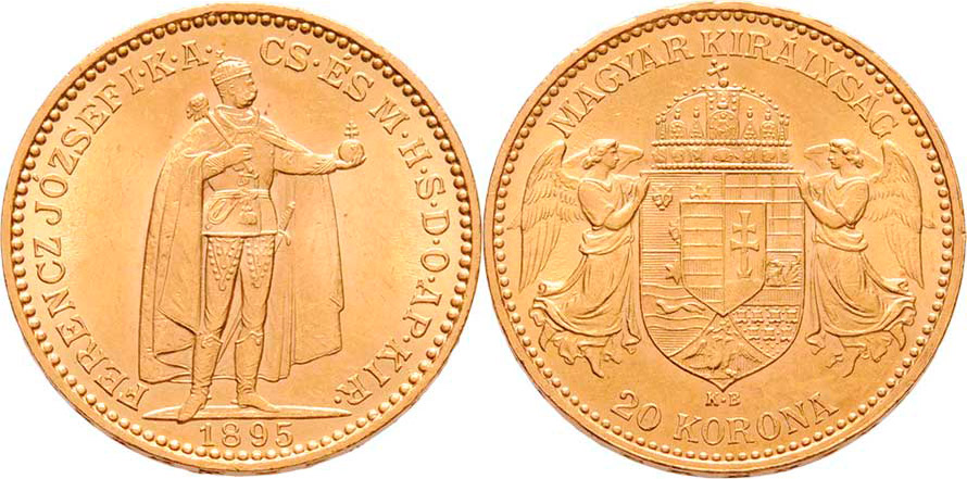 20 Koruna 1895 KB, 6.774g, nep.hr., nep.rysky, pěkná patina