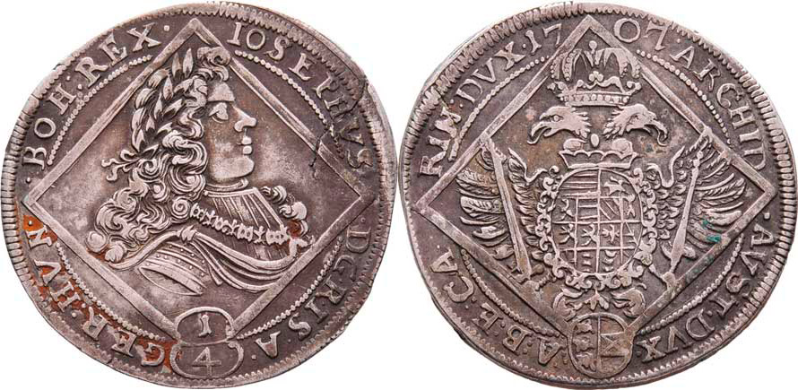 1/4 Tolar 1707, Sv.Vít-Preiss, M-A.206, 7.218g, napr.okraj, nep.nedor., pěkná patina RR!