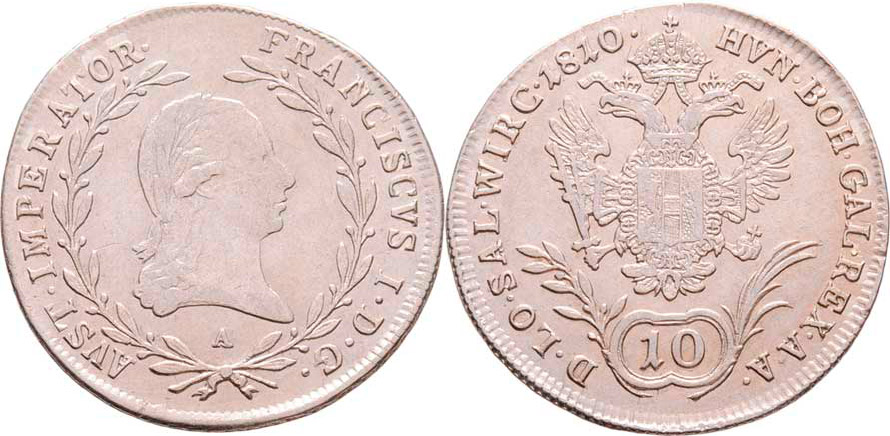 10 Krejcar 1810 A, Vídeň, 3.826g, nep.just., nep.hr., nep.rysky R!