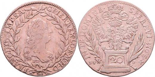 20 Krejcar 1765 BD/EvM-D - posmrtný (1769), N.47, Husz.1798, úprava razidla aversu BC na BD, 6.573g, nep.hr., nep.rysky, pěkná patina, téměř