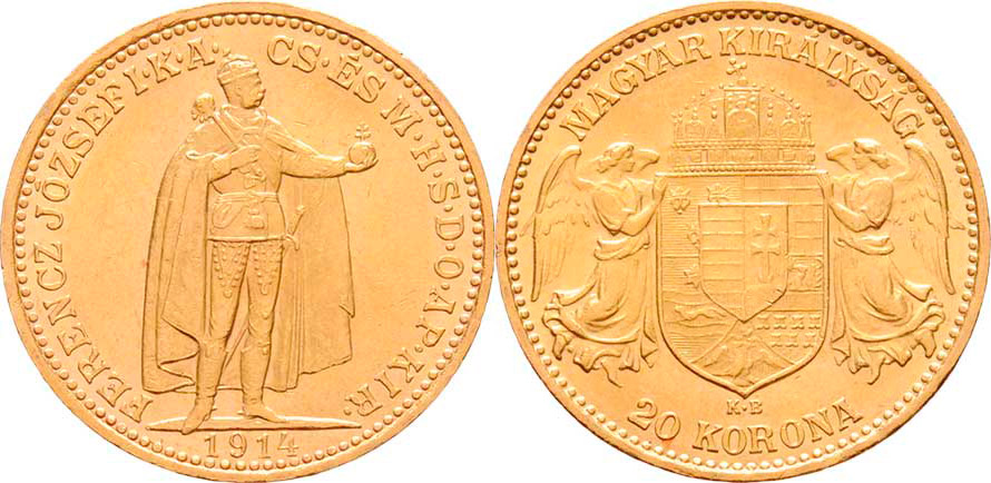 20 Koruna 1914 KB, 6.774g, nep.hr., dr.rysky, téměř