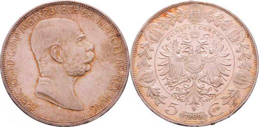 5 Koruna 1909 - Marschall, 23.942g, dr.hr., dr.rysky, pěkná patina