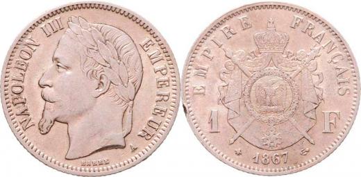 Frank 1867 A, Paříž, KM.806.1 (Ag835), 4.960g, hr., nep.rysky