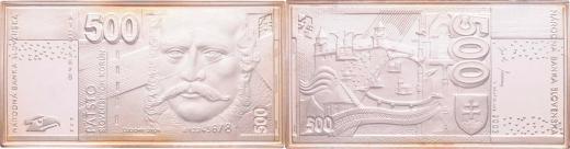 500 Sk 2003 - s motivy bankovky - Ľudovít Štúr / Bratislavský hrad, KM.71 (Ag925, 59x32 mm, 33.63g, pouze 6.000 ks), kapsle R!