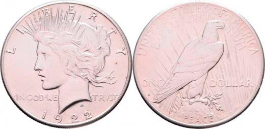 Dolar 1922 S - Mírový, KM.150 (Ag900), 26.735g, nep.hr., nep.rysky, téměř