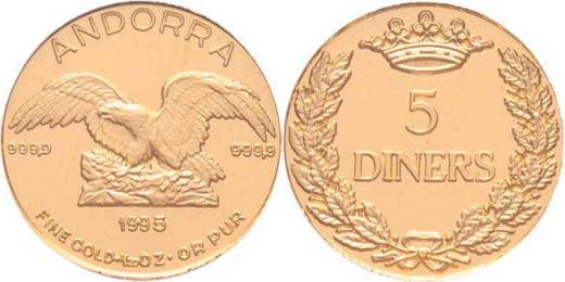 5 Diners 1995 - orel, KM.112 (Au999, 1/20 unce = 1.53g), kapsle